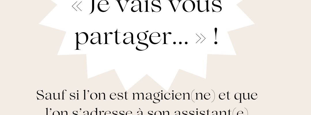 Partager n’est pas dire, communiquer, raconter, exprimer, faire part de. Cet usage est un anglicisme calqué sur le verbe « to share ».