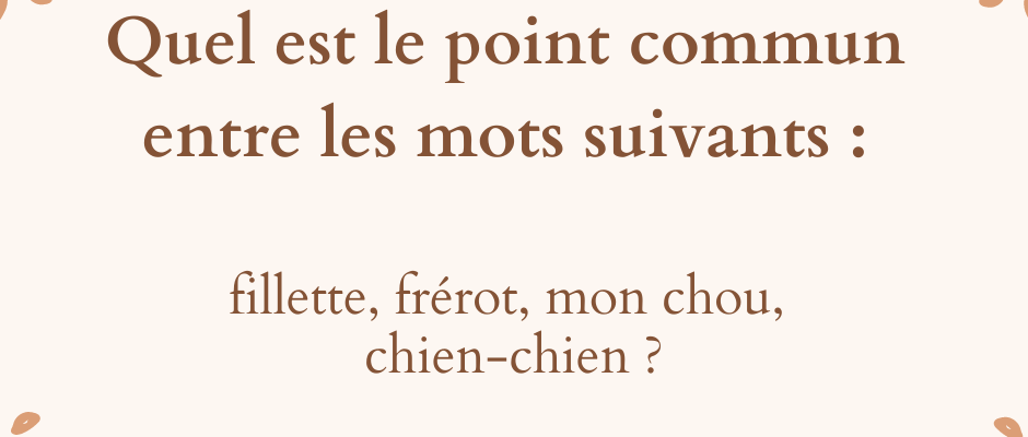 Quel est le point commun entre fillette, frérot, mon chou et chien-chien ?
