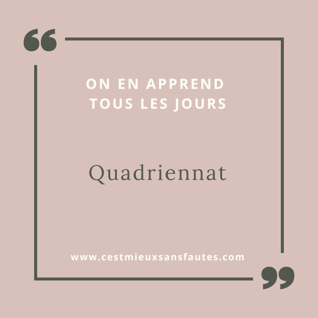 Eh bien, on entend ce mot beaucoup moins souvent, mais il s’agit tout simplement d’un quadriennat.